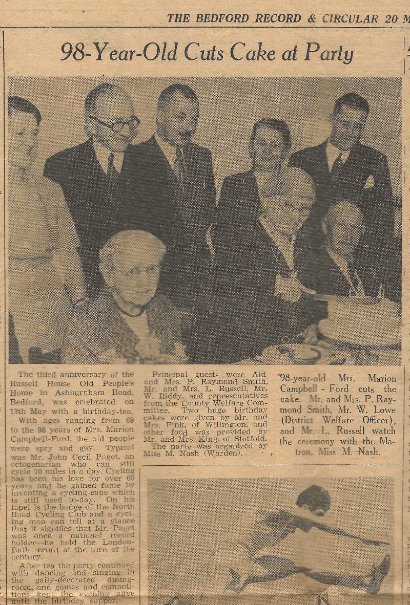 My great-grandfather died early in 1951. My great-grandmother soon moved with her mother Marion into a smaller house a half mile away. That house is still there. There is a picture of Marion, Foxy, my grandmother, and my infant uncle Michael all together that I think may possibly have been taken in the garden behind it. Foxy died before the end of 1951 leaving my poor great-great-grandmother alone. Marion ended up in an elderly care facility just to the south in Bedford and lived to be a hundred and two. I have a newspaper article with a photograph celebrating her 98th birthday in the home.