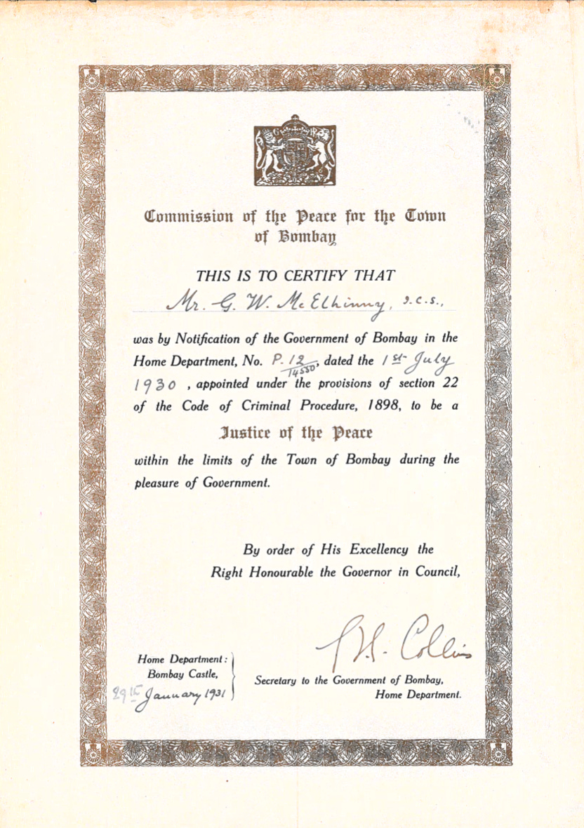 After graduating from Corpus Christi college at Oxford, having passed his Civil Service exam with flying colors, my grandfather arrived in India and became an assistant Collector in Bombay.