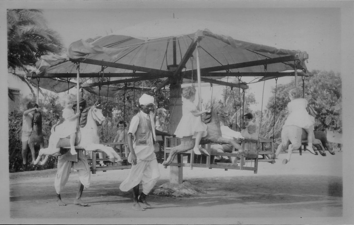 My uncle Michael appeared towards the end of 1933. My mother arrived in 1935 and my aunt Barbara arrived in 1937. The kids had a nanny named… well, Nanny, is the best my mother can remember. There were also plenty of Indian servants to go around. There’s a picture from a birthday party of the children on a merry-go-round made up of live ponies. Trotting behind each pony is a servant making sure their chubby young charges don’t fall off.